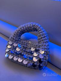 Borsa all’uncinetto con paillettes Colore grigio topolino Con tracolla in aggiunta Disponibile in altre colorazioni su richiesta🩶