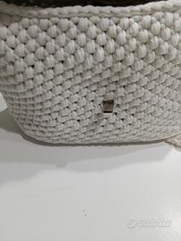 borsa uncinetto con fettuccia e fondo semipelle lavora a mano