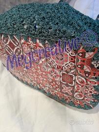 Vendo borsa realizzata a mano all'uncinetto con fettuccia. Foderata Prezzo 80€