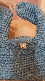 Borsa uncinetto tutta fatta a mano in fettuccia con stampa jeans,con tracolla removibile, chiusura con bottone argentato a forma di gattino. Su richiesta possibilità di creare altri modelli