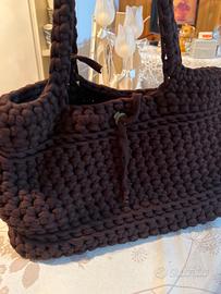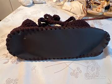 Borsa fatta uncinetto con fettuccia perfetta mai usata con fondo in cuoio cucito