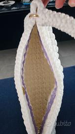 Borsa all'uncinetto in morbida fettuccia bianca di cotone.