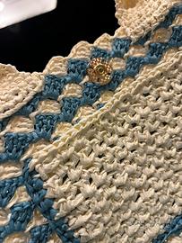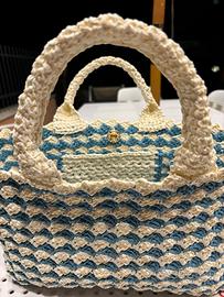 Blue and white crochet bag #crochetbag #pradainspired Borsa a mano realizzata in rafia di viscosa 100% lavorata all’uncinetto da me in ambiente privo di fumo di sigaretta. Per ottenere il prodotto finito sono state impiegate qualcosa come più di 20 ore di lavoro, per via della difficoltà nella lavorazione del materiale. La borsa misura cm 45x21x14 più i manici, è dotata di taschino interno ed automatici color oro. Quella in foto non è disponibile alla vendita ma posso realizzarla in 2 settimane, anche in altri colori visibili in foto.