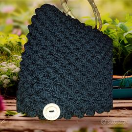 Borsa nera lavorata a mano all'uncinetto con punto nocciolina