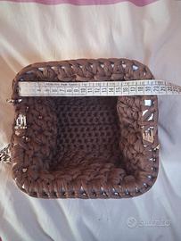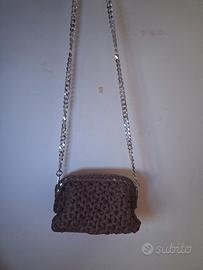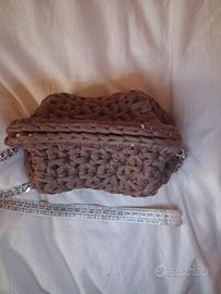 borsa uncinetto fatta a punto fiore o stella con clutch chiusura da 20cm e tracolla da 60cm