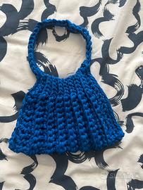 borsa realizzata all’uncinetto con un filato blu elettrico, perfetta per l’arrivo della stagione primaverile ed estiva.