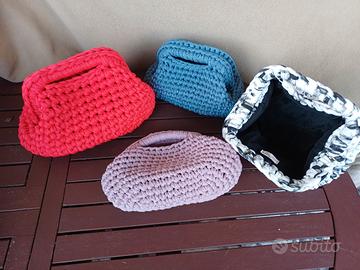 Borse ricamate e rivestite a uncinetto, artigianale fatte a mano, disponibili in vari colori e modelli.
