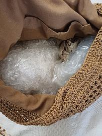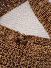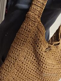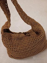borsa uncinetto lavorata a rete con cordino piatto di seta.