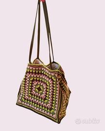 Borsa realizzata a mano con bottoncino e fodera interna.