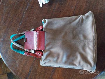 borsa a spalla Tote bag Diesel collezione Black Gold in pelle morbidissima beige e azzurra usata poco. gli unici segni di usura sono quelli in foto 1 .