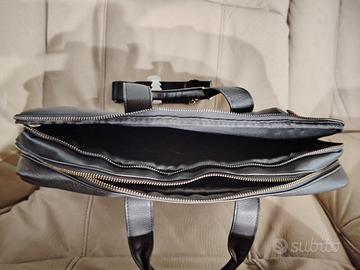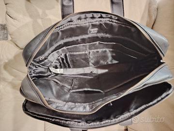 Vendo borsa in pelle nera Mod. GO di Carpisa con tracolla. Nel suo interno ha diversi comportati e tasche con e senza cerniera utili per contenere tablet, pc, cartelline, penne, ecc. Inoltre, ha una piccola tasca esterna per contenere chiavi e quant’altro.