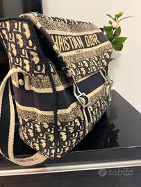 Borsa a tracolla Christian Dior Diorcamp blu con ricamo Dior Oblique.
