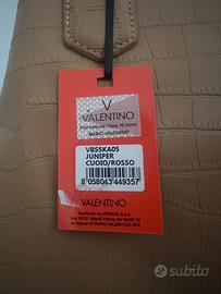 Vendo elegante borsa Valentino Bags in ecopelle effetto coccodrillo, colore taupe/beige, con interno a contrasto rosso acceso. La borsa è nuova, mai utilizzata, ancora con cartellino originale e imbottitura interna. Caratteristiche: Materiale: ecopelle con stampa coccodrillo Colore esterno: taupe/beige Interno: rosso Chiusura con bottone a pressione Manici rigidi e tracolla aggiuntiva inclusa (ancora imballata) Tasca interna con zip Capiente, ideale per tutti i giorni Perfetta sia per l’uso quotidiano che per un look più elegante.