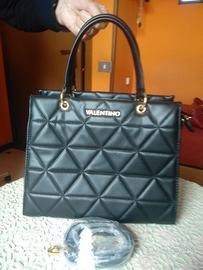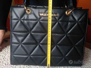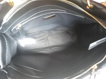 Borsa in ecopelle con motivo trapuntato a triangoli, dotata di doppio manico e tracolla rimovibile. Le dimensioni corrispondono a circa 30 x 25,5 x 13,5 cm Materiale: Ecopelle con effetto trapuntato. Interno: Scomparto unico foderato con tasche interne applicate e chiusura centrale con zip. Dettagli: Logo frontale e finiture in metallo dorato. MAI INDOSSATA Ritiro a mano, periferia roma nord oppure spese di spedizione a carico dell'acquirente
