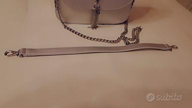 Una tracolla è 100% lega di zinco e lunga 102cm, l'altra è in poliuretano e lunga 46cm.