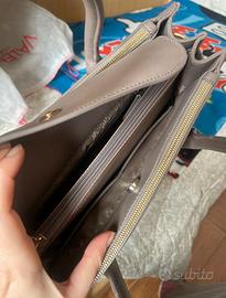 Borsa Mario Valentino originale. Colore taupe/grigio chiaro, molto elegante e facile da abbinare. Modello strutturato con manici rigidi e chiusura con zIp. Logo V frontale. Effetto saffiano. Ottime condizioni! Perfetta sia per uso quotidiano che più elegante Ha la sua tracolla e la sua dust bag. Ps. Se interessati ho anche il portafoglio abbinato ma in condizioni non ottime perché l'ho effettivamente usato. Nel caso posso mandarvi foto senza problemi :)
