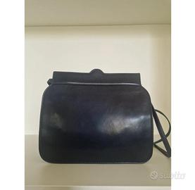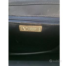 Borsa Valentino Garavani color blu notte in pelle spazzolata con dettaglio chiusura in plastica e V gold logo e tracolla lunga di pelle
