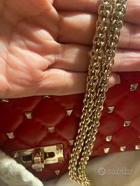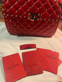 Borsa Valentino misura media rossa modello molto attuale; ha qualche difetto dovuto all'uso nella parte interna e nei ganci della tracolla; per il resto e' perfetta! codice interno alla borsa!