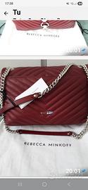 Borsa nuova Rebecca Minkoff vera pelle bordeaux lavorazione Chevron con catena