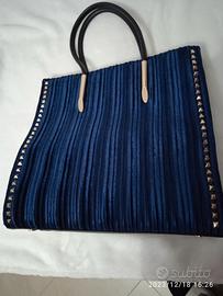 Vendo bellissima borsa in vellutino bluette, di grande effetto ed eleganza, il davanti è a costine sempre in vellutino rifinita con borchiette ai bordi. Si può portare sia a mano e tracolla.In PERFETTE CONDIZIONI. È nuovissima mai usata. Le misure sono 35×35 cm. PER INFO CONTATTARE LA CHAT NO SPEDIZIONE GRAZIE