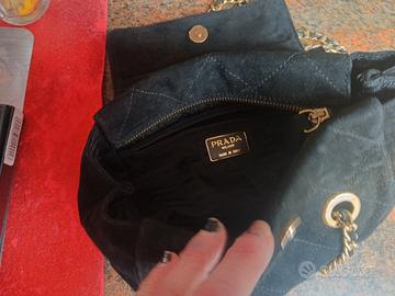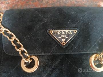 Borsetta vintage anni 80 originale marchio Prada,nera in velluto ,con catene.Misure 22 x 20.