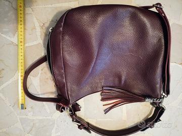 Borsa vera pelle con tracolla/tracollina e portachiave, 2 taschini laterali con cerniera ed una bella parte davanti. Tasca grande con cerniera interna più una più piccola sempre con cerniera e una piccolina.