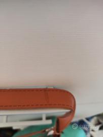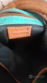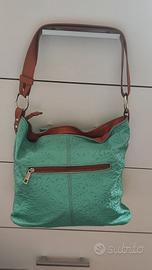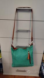 borsa vera pelle verde acqua. con tracolla che si può portare corta e lunga. ha un piccolo segno sulla tracolla.