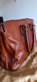 Borsa a mano in vera pelle, modello valigetta, molto capiente. Prodotto da Marianelli, marchio italiano di qualità. Usata, ma sempre ben conservata, è in condizioni molto buone. La borsa ha manici robusti, due profonde tasche esterne chiuse con clip a calamita e una tasca interna chiusa da zip.