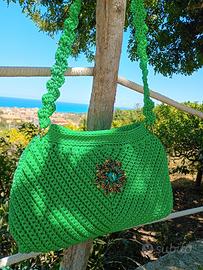 borsa verde realizzata in cordino. Chiusura con bottone magnetico. Foderata. Per altre info contattatemi