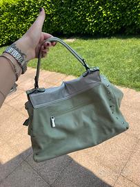 Borsa color verde salvia e silver glitter con dettaglio borchie piatte silver + tracolla.
