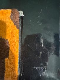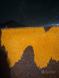 !!prezzo trattabile!! Borsa verniciata nera vintage con dettagli in pelle e pelo con motivo mucca sul davanti e sui lati Brand Rossini