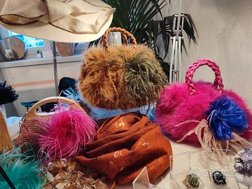 borsa di pelo con spilla di struzzo
