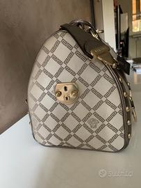 La borsa è stata usata pochissimo , riporta impercettibili segni di sui bordi di appoggio inferiori. Dotata due comodi manici, un reparto interno con zip e resistenti cerniere riri e versace. Made in Italy con 100% pelle di prima qualità e tela logomania monogram con hardware in metallo dorato e tema bronzo. Interno spazioso senza alcun segno di usura. All'esterno Il suo intramontabile motivo monogramma e la classica testa di Medusa la rendono una borsa ideale sia per le occasioni casual che formali.