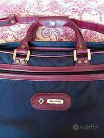 Borsa da viaggio Samsonite con tracolla e 4 tasche. Verde con finiture marroni. Cm 54x36x15. Non spedisco: ritiro a Bologna