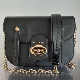 Borsa nera tracolla catena dorata e passaspalla nero, cm 25 larghezza circa.
