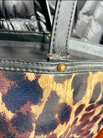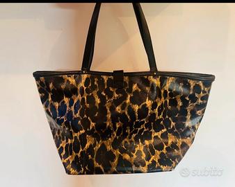 Vendo splendida borsa Victoria’s Secret in stampa animalier con scritta rosa fluo. La borsa presenta solo qualche segno di usura alla base dei manici (visibili in foto).