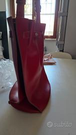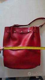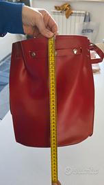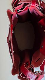 Splendida borsa a secchiello (bucket bag) vintage in vera pelle di alta qualità, color rosso ciliegia intenso. Un pezzo intramontabile appartenuto a mia madre, che si distingue per la robustezza dei materiali e la pulizia del design. La pelle è molto strutturata, quasi certamente conciata al vegetale, con i classici bordi a taglio vivo che ne esaltano l'autenticità. Più la userai, più diventerà bella nel tempo! La borsa non presenta etichette interne di composizione, ma essendo un articolo vintage di famiglia e conoscendo la qualità del materiale, garantisco che si tratta di vera pelle artigianale. Lo si capisce chiaramente dal taglio vivo sul manico, dal peso, dal retro scamosciato del materiale e dalle pieghe (visibile nelle foto)