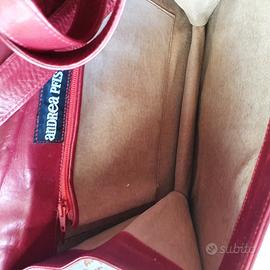 Borsa vintage ANDREA PFISTER anni 90 in pelle perlata rossa. Fodera pelle beige con zip. Autentica e originale. Misure 22 x 19cm Soffietto 3 cm. Tracolla estraibile 130 cm. Completa con sacchetto in panno ANDREA PFISTER. Si specifica che si tratta di una borsa usata e non nuova. Vendo 50 euro.