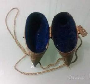 Vendo borsa vintage in ottone rame a tracolla anni '30. Si tratta di un ottone e rame cuscino stile Borsellino, martellato in ottone decorato, ornato di fiori cerniera e chiusura. Vendo per inutilizzo.