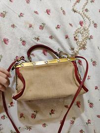 borsa vintage anni 50/60 in tela con chiusura in acciaio e rifiniture in belle ottime condizioni generali