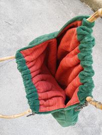 Borsa vintage anni 60 con manico in bambù, in buono stato , color verde, consegno presso il mio domicilio o spedisco, per favore contattatemi solo se veramente interessati.