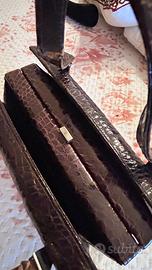 Vendo elegante borsa vintage in vera pelle di pitone color marrone scuro.