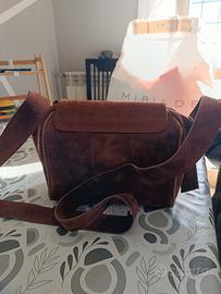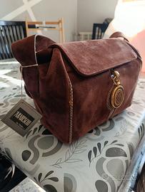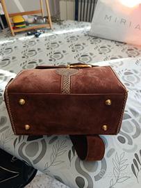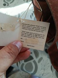Questa borsa vintage sembra essere un pezzo della collezione Arabeschi by Vitale, un marchio associato alla pelletteria artigianale italiana. Si distingue per il corpo in camoscio marrone arricchito da dettagli e profili in pelle di rettile (probabilmente pitone o serpente). Etsy Etsy +1 Dettagli del Modello Materiali: Pelle scamosciata di alta qualità con inserti in pelle esotica. Design: Presenta una patta frontale con un distintivo pendente metallico dorato che racchiude un inserto in rettile, richiamando lo stile delle collezioni artigianali italiane degli anni passati. Caratteristiche: Struttura morbida ma definita, con tracolla larga integrata. San Rocco Italia San Rocco Italia +4 Valutazione e Cura Le borse in vero camoscio e pelle esotica sono articoli di pregio. Per mantenere il valore di un pezzo vintage come questo: Pulizia: Utilizza spazzole o gomme specifiche per il camoscio per rimuovere polvere e macchie leggere. Conservazione: Evita l'umidità e la luce solare diretta per prevenire lo sbiadimento del colore. Originalità: Trattandosi di un marchio artigianale, il valore risiede nella qualità delle cuciture e nell'integrità delle parti metalliche.