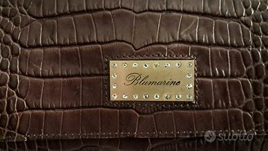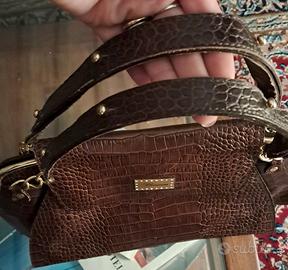 Borsa di pelle marrone, stampa cocco, con dettagli in metallo dorato e tre vani interni, come nuova
