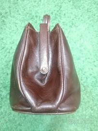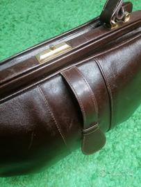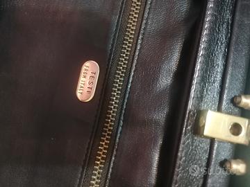 Marchio vintage Testi, misure 19x32 cm. In pelle vera martone scura, chiusura particolare a chiodino. In ottimo stato di conservazione