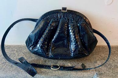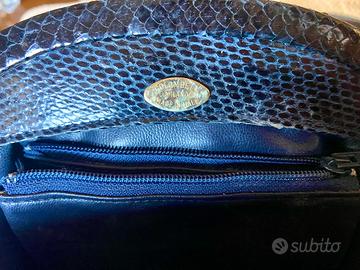 Vendo borsa Vintage Colombetti Milano in vero pitone color blu notte. Chiusura a clip, taschino interno e tracolla.