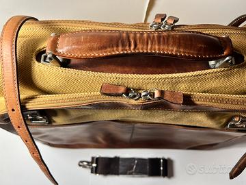 Ottima concia del pellame, articolo robusto, lavorato e impunturato interamente a mano. Utilizzabile come borsa da lavoro e/o da viaggio, ricco di scomparti e tasche. Raddoppia la sua capacità di carico grazie a un accessorio che si monta sulla borsa come una bisaccia da sella e può contenere una buona quantità di vestiario.