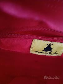 borsa vintage in midollino di mamalu con tracolla rossa e interno rosso