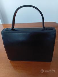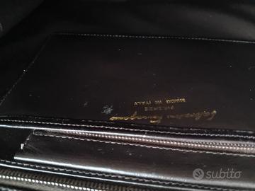 Borsa a mano Salvatore Ferragamo in pelle liscia marrone con manico in pelle marrone e patella con chiusura di 2 gancini e tasca davanti.