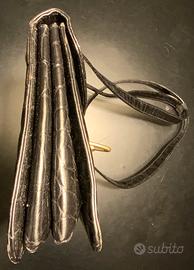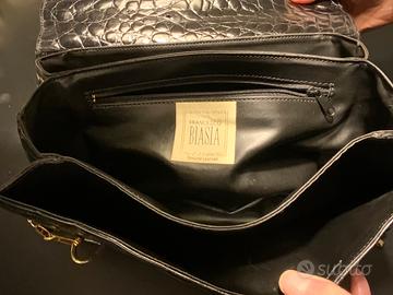 Vendesi borsa a spalla vintage marchio Francesco Biasia in pelle nera stampa coccodrillo lucida con metalleria col. oro. A soffietto con 3 scomparti.